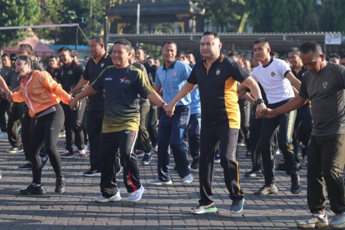 Beritanews9.id || PASURUAN – Wujud Sinergitas dalam menjaga Kedaulatan NKRI, Polres Pasuruan menggelar Olahraga Bersama TNI-POLRI dalam rangka Hari Bhayangkara ke-78 yang dilaksanakan di lapangan Sarja Arya Racana Polres Pasuruan, Jum’at (21/06/2024) pukul 07.00 WIB.