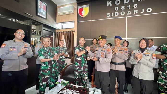 Beritanews9.id || SIDOARJO – Memperingati ulang tahun TNI ke-80 tahun 2025, pejabat utama Polresta Sidoarjo dan anggota mendatangi Mako Kodim 0816 Sidoarjo, pada Senin (6/10/2025).