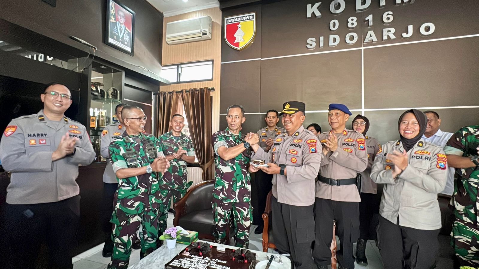 Kasdim 0816 Sidoarjo Mayor Inf Sumarsono mengucapkan terima kasih atas kunjungan kejutan dalam rangka ulang tahun TNI ke-80 dari Polresta Sidoarjo dan jajaran.