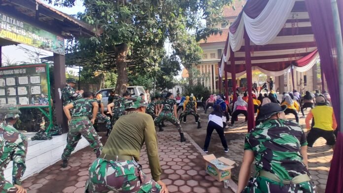 Antusiasme warga pun terlihat jelas. Dengan iringan musik riang, prajurit TNI dan masyarakat bergerak serempak mengikuti instruktur senam. Tawa, canda, dan keceriaan tampak mewarnai setiap langkah mereka.