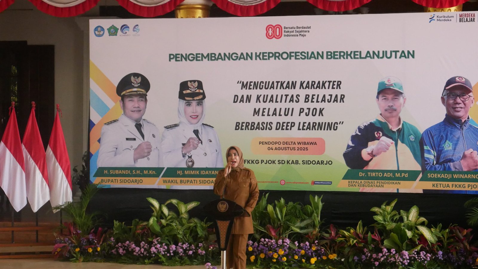 Beritanews9.id || SIDOARJO – Wakil Bupati Sidoarjo, Mimik Idayana secara resmi membuka kegiatan Pengembangan Keprofesian Berkelanjutan (PKB) bagi guru Pendidikan Jasmani, Olahraga, dan Kesehatan (PJOK) jenjang Sekolah Dasar (SD) se-Kabupaten Sidoarjo, Senin (4/8/2025) di Pendopo Delta Wibawa.