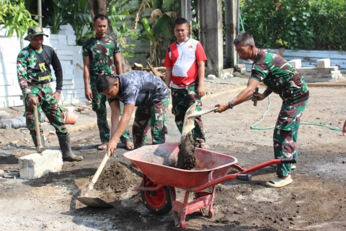 Beritanews9.id || SIDOARJO, Selasa (14 Oktober 2025) — Suasana gotong royong tampak begitu hangat di lingkungan Pondok Pesantren Torriqussalam Indonesia milik H. Abdul Rokim di Desa Kedondong, Kecamatan Tulangan, Kabupaten Sidoarjo. Sejak pagi, prajurit Satgas TMMD ke-126 Kodim 0816/Sidoarjo bersama karang taruna dan warga setempat bahu-membahu melakukan pemavingan lapangan voli, salah satu sasaran fisik dalam program TNI Manunggal Membangun Desa (TMMD) Tahun 2025.